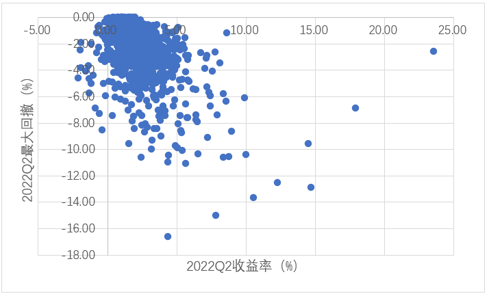 图:2022Q2全市场“固收+”基金收益与最大回撤表现
