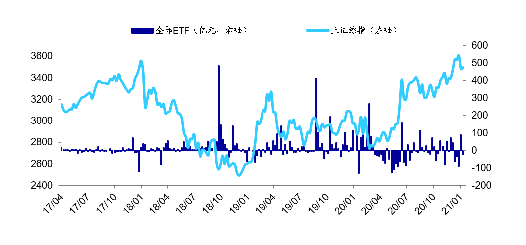 最近一周ETF净申购现金规模为-22亿元,年初至今为-121亿元;其中科技成长类ETF为27亿元,年初至今-84亿元。