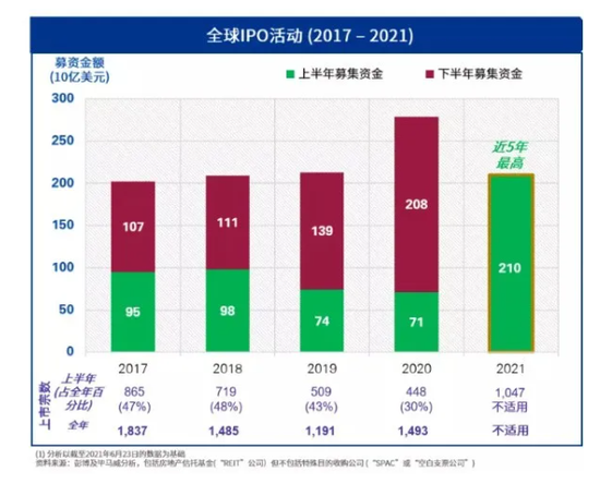 年中盘点丨2021年上半年,全球IPO募资超2100亿美元,猛增近两倍,中美是绝对主角……