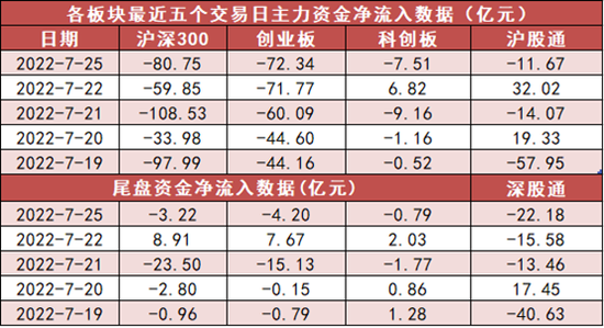 沪深300今日主力资金净流出80.75亿元,创业板净流出72.34亿元,科创板净流出7.51亿元。沪股通净流出11.67亿元,深股通净流出22.18亿元。