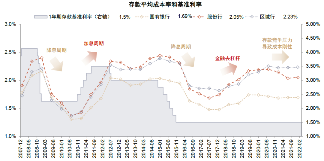 资料来源:Wind,中金公司研究部图表19:…但银行存款基准利率并未下调,存款竞争环境存款成本保持刚性