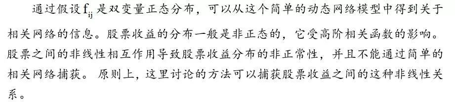 虽然第三种可能性也有可能发生,但我们在这里先忽略它。我们可以对前两种可能性做出更有意义的评论。为了计算方便,通常在金融文献中假设财务变量和股票收益之间存在线性关系,但这种假设没有科学依据。然而,假设潜在因素和财务变量是线性相关的似乎是合理的。这也代表链路概率和财务变量之间的非线性关系。新闻和公告等因素肯定需要区别对待,修改我们的模型以包含这些因素会很有趣,可以在动态网络模型简单修改来分析危机期间新闻和公告的影响。但这些是相当费力和耗时的工作,我们将把这些研究留给未来。