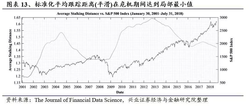图表13显示了滞后距离的横截面平均值的时间序列。我们可以看到该指标在主要危机时期附近达到局部最小值。