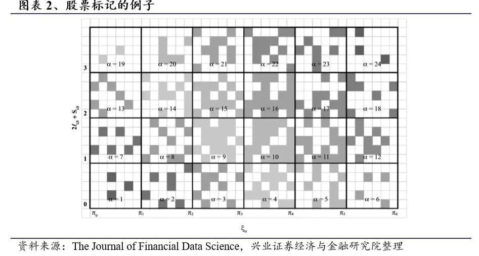 本文选择m = 10, 即标签总数为40。使用前面描述的方法,给定股票从1995年1月1日到2018年7月31日每一天的标签。