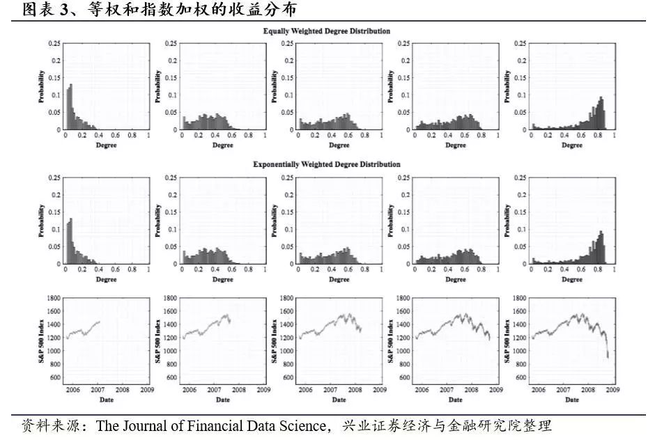 度分布的演变在恢复期呈现出潮汐模式。随着市场从危机中复苏并且市场中股票的价格变化变得更加不相关,分布的负面偏离特征逐渐消失。图表7表明,在危机后或复苏阶段,股票之间的相关性较小。