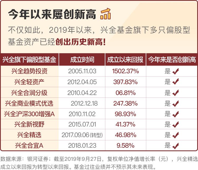 银河证券数据显示,截至2019年9月末,兴全基金过去6年股票和债券投资管理能力均位居行业第1(1/68,1/52)。