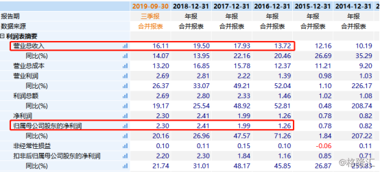 据最新的2019年三季报显示,前三季度实现营业总收入14.5亿,同比增长14.1%;实现归母净利润2.1亿,同比增长20.2%。而扣除非经常性损益的净利润1.99亿元,同比增长21.74%。