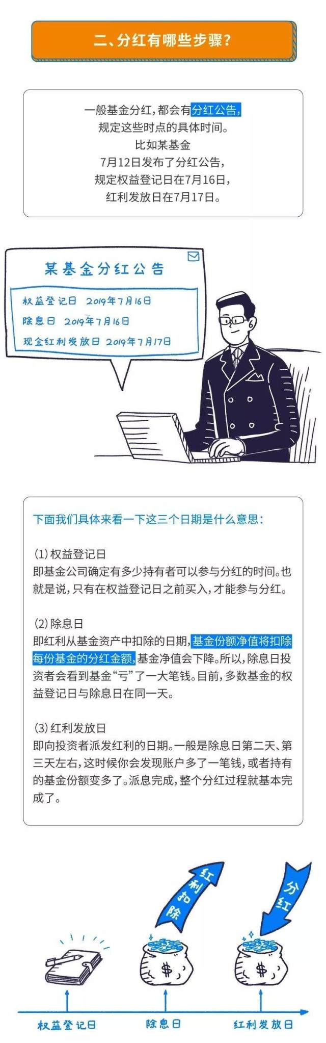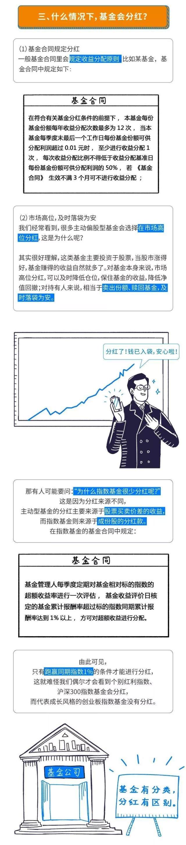 (1)基金分红就是基金-部分收益的转移,它受到合同的约束,并且分红之前会发布公告告知具体的分红日期。