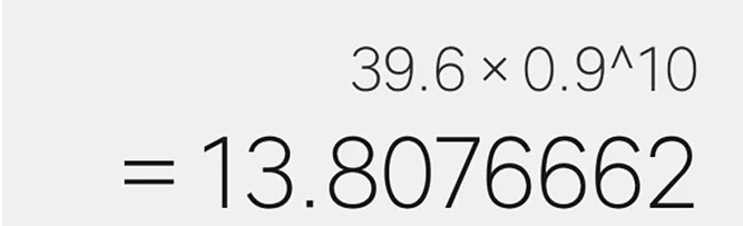 第十年自由现金流的贴现值=39.6*(0.9的十次方)=13.81亿。