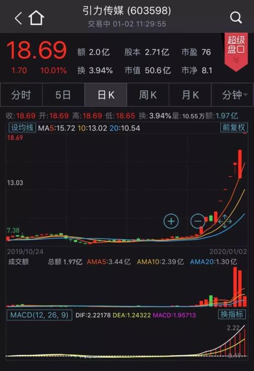 星期六作为近阶段最受市场关注的个股,从12月13日现近期首个涨停以来,加上今天,14个交易日已累计上涨了200.56%。除星期六外,引力传媒迎头赶上,自12月19日现近期首个涨停以来,到今日10个交易日已累计上涨了123.03%。