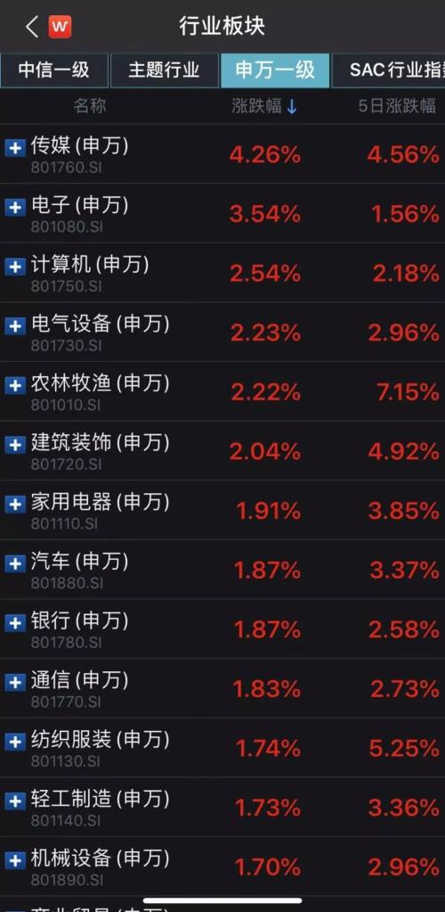 Wind银行指数上涨1.88%,Wind券商指数上涨1.28%,Wind房地产指数上涨1.41%。申万一级28个行业除食品饮料行业下跌、医药生物行业收平外,其他26个行业板块全线上涨。