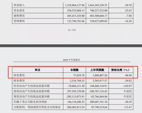 面对困境,沈东军却似乎还是只有老一套——大搞宣传。财报显示,2019年,莱绅通灵投入的广告费为2260.69万元,然而研发费用仅为5.7万元。