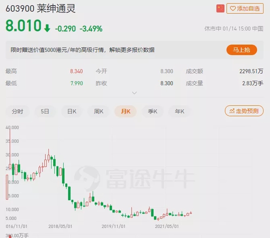 截至1月14日收盘,莱绅通灵报8.01元/股,跌3.49%,市值为27亿元,相较于2016年的38.76元/股,股价已处于山脚,经历过此次控制权变更、以及高层大变动后,该公司未来的经营发展能否恢复此前业绩,目前要下结论或还为时尚早。