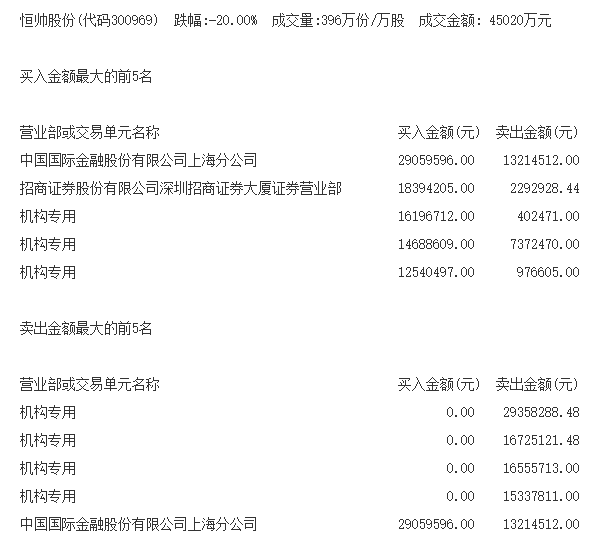 1月19日,恒帅股份今日放量跌停,截至收盘,报105.69元,成交额4.50亿元,换手率19.78%。