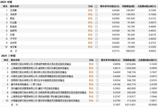 在2021年半年报中,恒帅股份的流通股东榜中还未见机构身影,而到了2021年三季度末,其流通股东榜中清一色是机构。
