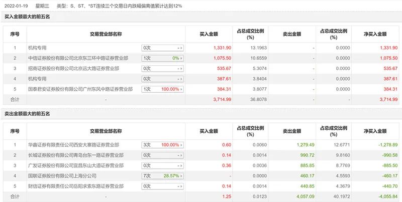 值得注意的是,从盘面上看,与之前蜂拥而逃相比,已有机构敢于抄底,在跌停板上扫货。1月19日,ST国医龙虎榜数据显示,近三个交易日买入金额最大的前五名中有2个机构席位,其中一机构净买入1331.9万元位列第一。