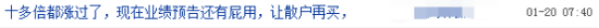 不过,也有股民表示,十多倍都涨过了,现在业绩预告没多大用;还有股民表示,疫情是短期,疫情过后,一地鸡毛。