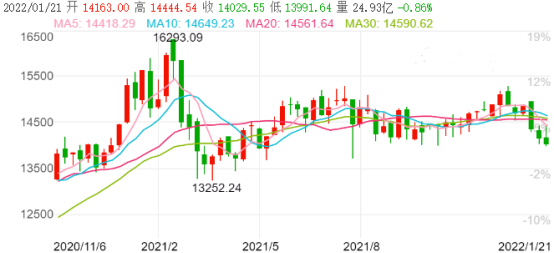 图表来源:Wind;2020.11.6-2022.1.21深证成指走势图(周K)