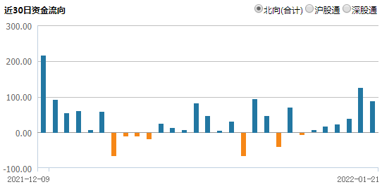 注:沪深港通资金流向数据,根据每日盘后交易所公布的沪深港通买入成交总金额及卖出成交总金额计算所得,真实反映沪深港通南北向资金流动情况。数据来源:Wind;截至2022.1.21。