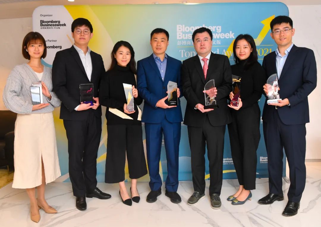 下面是彭博商业周刊(中文版)2021年度领先基金大奖之卓越大奖–投资级债券基金奖项授予留影画面,易方达香港公司固收团队同事参与。