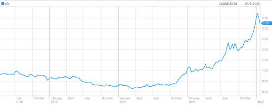 值得注意的是,赣锋锂业全年归母净利润和扣非归母净利润之间相差19亿元。据赣锋锂业证券部工作人员透露,2021年业绩预告中的这笔19亿元非经常性损益,主要来自持有锂矿企业Pilbara(ASX: PLS)的股权的收益。该公司同样在澳大利亚证券交易所(ASX)上市,2021年Pilbara股价上涨近三倍,当前市值高达103.2亿澳元。