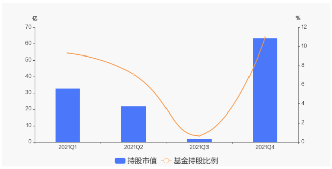 此外,据东财choice数据,截至2021年12月31日,共有158只基金的十大重仓股中持有中天科技,合计持有3.74亿股,环比上季度增长1728.26%;持股市值63.35亿元,较第三季度大幅提升,比上季度末增加61.49亿元,为公募基金全市第108重仓股。