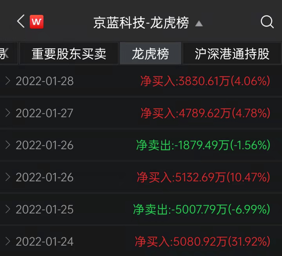 1月24日至28日,京蓝科技连续5天登上龙虎榜,出现疑似游资炒作的迹象。