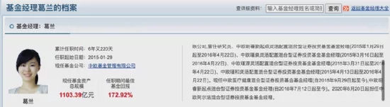 数据显示,截至2021年末,葛兰管理的公募基金规模正式突破一千亿元,达1103.39亿元,被称为“公募一姐”。