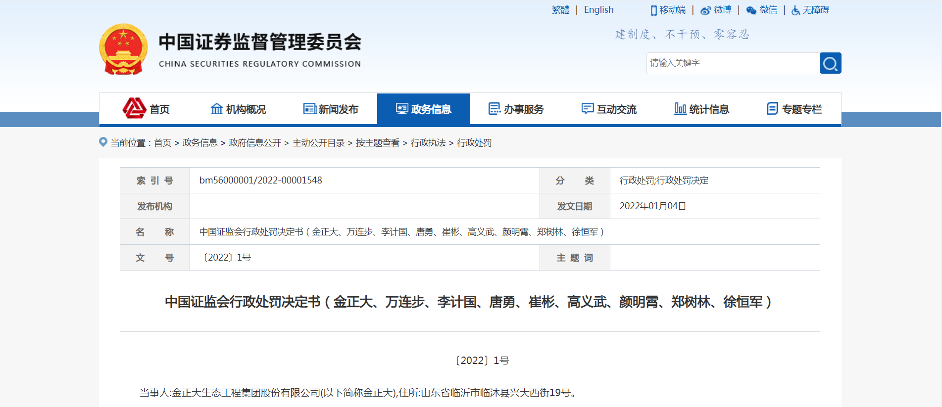 日前,证监会披露了2022年首张行政处罚决定书,金正大生态工程集团股份有限公司(下称“金正大”)及8名高管累计被罚755万元,其中3名主要责任人被采取3-10年市场禁入。
