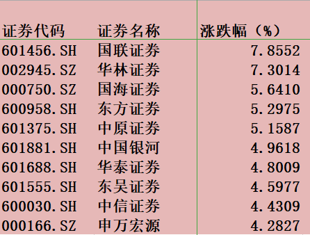 据同花顺iFinD统计显示,一周来(2月7日至2月11日)国联证券上涨7.85%,位居第一;华林证券上涨7.3%,国海证券上涨5.64%,分别位居第二和第三;东方证券和中原证券上涨均超过5%,位居第四和第五。