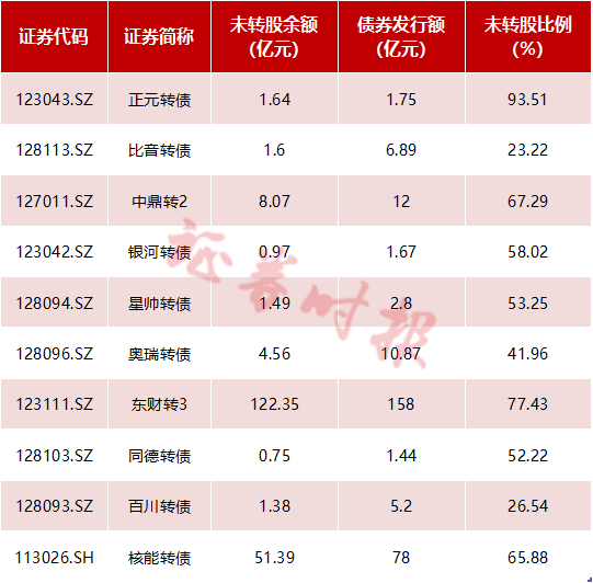 值得一提的是,强赎日期临近,但不少可转债的未转股比例仍较高,意味着多数债券持有者还未进行转股。