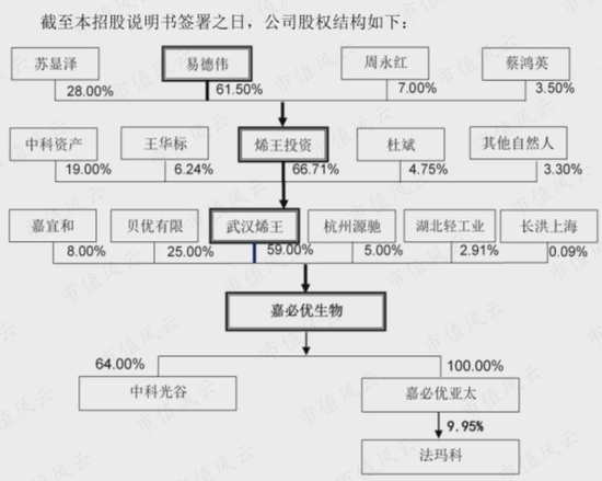 而后股权几经变更,发行上市时,易德伟通过武汉烯王间接控制嘉必优。
