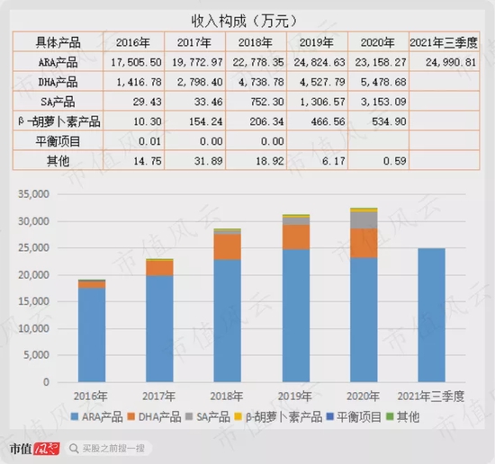目前公司主要收入来源是ARA和DHA,同时SA产品增长较快,2020年较2019年增速超140%。
