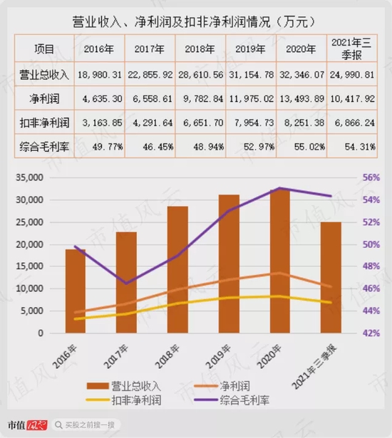 整体来看,嘉必优的产品还是卖得不错的,营业收入、净利润及扣非净利润保持增长态势,2019年上市以来至2021年三季度末,为全体股东累计创造了3.6亿净利润。