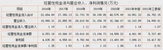 再做个延伸:2021年以来应收账款高速增长,直接导致经营性现金流净额与净利润不匹配,三季度末,经营性现金流净额为5337万元,仅仅是净利润1.04亿元的一半。
