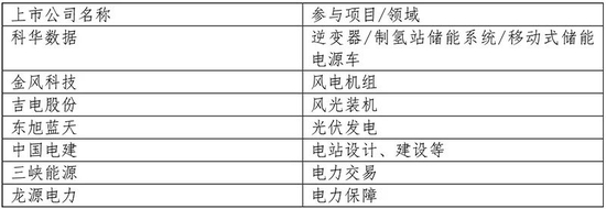 部分上市公司参与北京冬奥会清洁能源供应情况