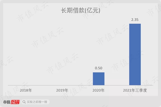 除了短期借款规模从2018年的3.25亿元不断提升至2021年三季度末的7.75亿元之外,公司的长期借款也从2020年的0.5亿元突然大幅增加至2021年三季度末的2.35亿元。截至2021年三季度末,短期借款加上长期借款就超过了10个亿。