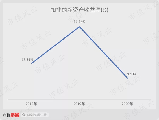 奈何毛利率和净利率的下降幅度太大,直接抵消了公司高周转优势,导致公司的ROE也出现了大幅下滑。扣除非经常性损益之后的净资产收益率在2019年还有31.54%,到了2020年,就只有9.13%。
