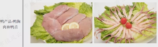 屠宰、加工的生产周期较短,一般是当日送达,当日就要屠宰入库。公司鸭产品包括鸭脖、鸭掌、鸭腿等。下图所示的是鸭产品中的鸭胸肉和鸭舌。