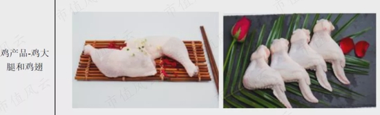 鸡产品则主要涵盖鸡脖、鸡腿、鸡爪等。下图所示的是鸡产品中的鸡大腿和鸡翅。