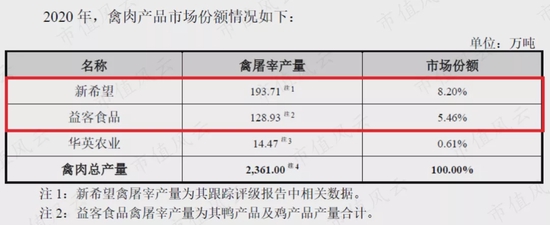 目前国内做禽肉屠宰和加工的企业可太多了,市场竞争格局非常分散。根据公司引用的数据,2020年国内禽屠宰产量排名第一的是新希望(中国最大的肉禽加工企业),市场份额为8.2%。益客食品排第二,仅次于新希望,市场份额为5.46%。