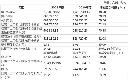 15日晚间,药明康德发布业绩快报,2021年营业收入为229.02亿元,同比增长38.5%;归母净利润50.97亿元,同比增长72.19%。