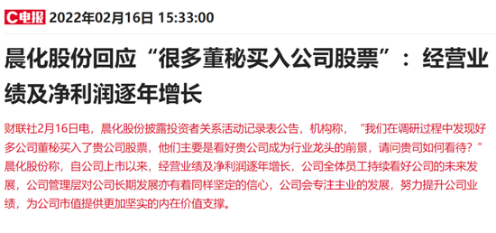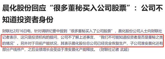 对此,财联社记者第一时间采访公司人士,晨化股份表示对投资者的身份毫不知情。