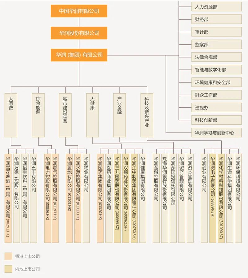 公开资料显示,华润(集团)有限公司为国有重点骨干企业,已发展成为业务涵盖大消费、综合能源、城市建设运营、大健康、产业金融、科技及新兴产业6大领域,下设25个业务单元,一家直属机构,实体企业近2000家,在职员工37.1万人,位列2021年《财富》世界五百强第69位。目前,华润(集团)有限公司旗下有多家在香港及内地的上市公司。