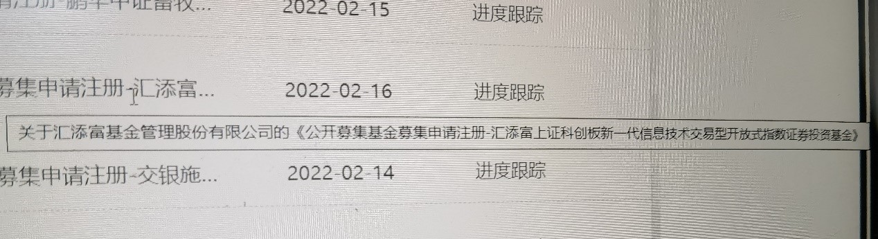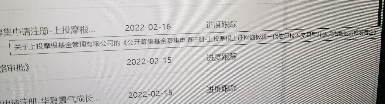 根据证监会网站显示,近日有4家基金公司纷纷上报了上证科创板新一代信息技术ETF,这4家基金公司分别为嘉实基金、华安基金、上投摩根基金和汇添富基金,接收材料的时间均为2月16日。