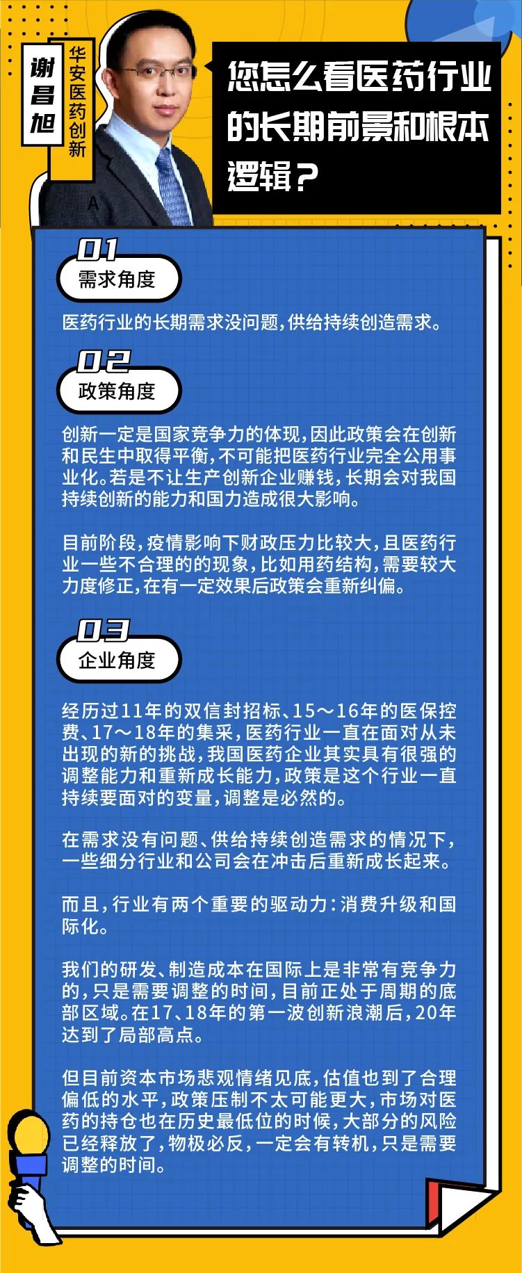 最后附上小安家医药基金经理谢昌旭的最新观点: