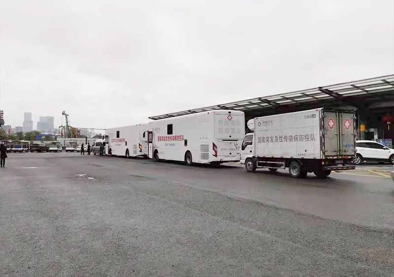 2月17日下午,内地支援香港抗疫流行病学专家组和移动核酸检测车在深圳湾口岸整装待发