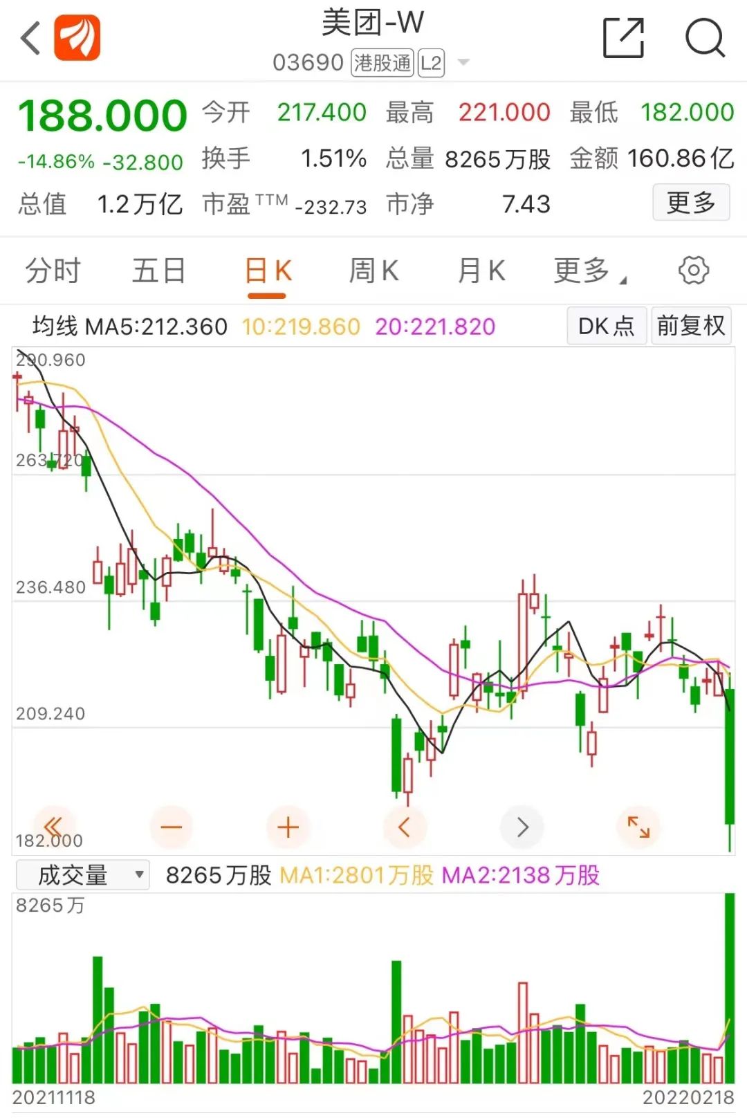 关于“引导外卖等互联网平台企业进一步下调餐饮业商户服务费标准”的信息也令美团出现大跌水,该股盘中最大跌幅超过17%。截至收盘,美团收跌14.86%。