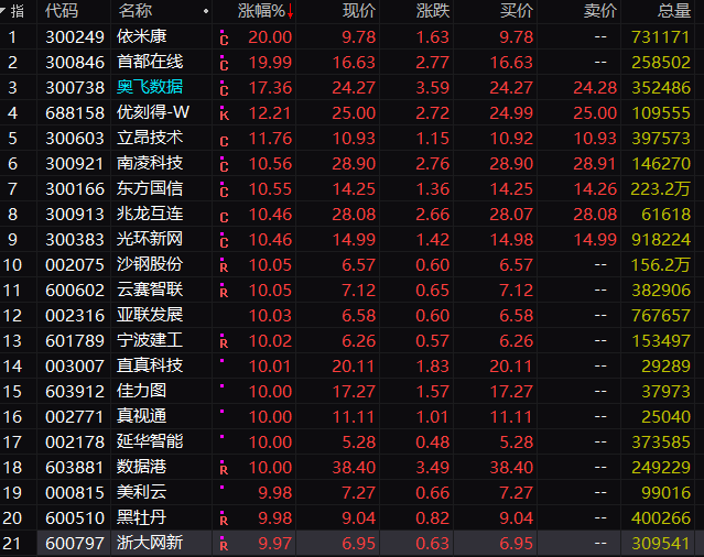 有专家测算,这个工程的利好级别达4000亿元人民币。资本市场也因此出现异动。数据中心板块出现涨停潮,IDC板块大涨5.56%。