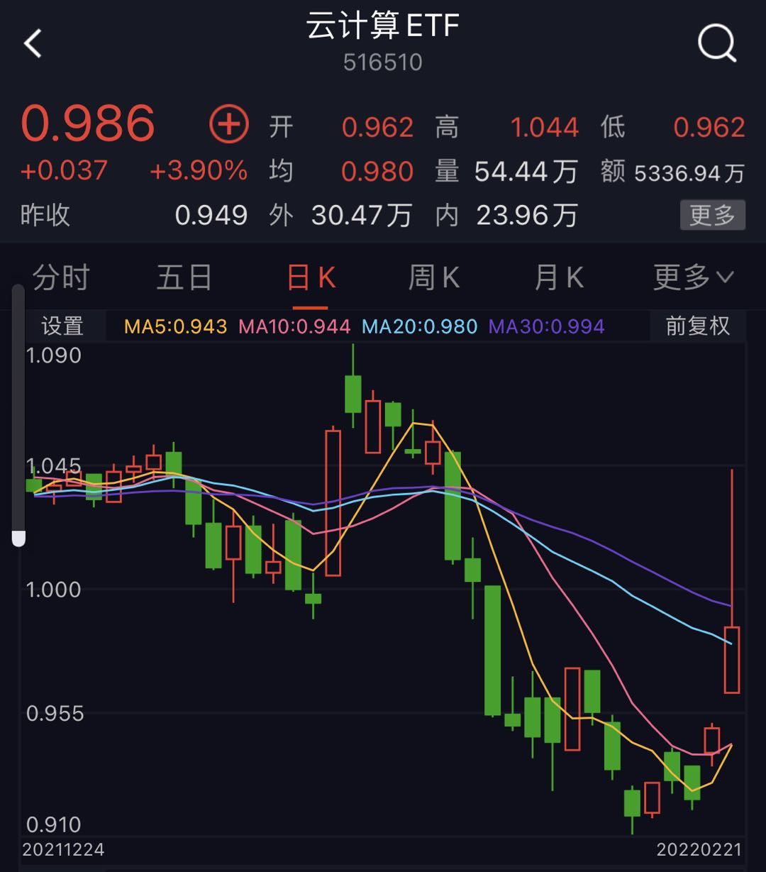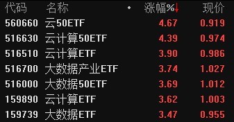 华宝大数据产业ETF(516700)集合竞价阶段就被资金疯抢,接近涨停开盘;易方达云计算ETF(516510)、招商云计算ETF(159890)盘中也一度被场外资金买到涨停价。
